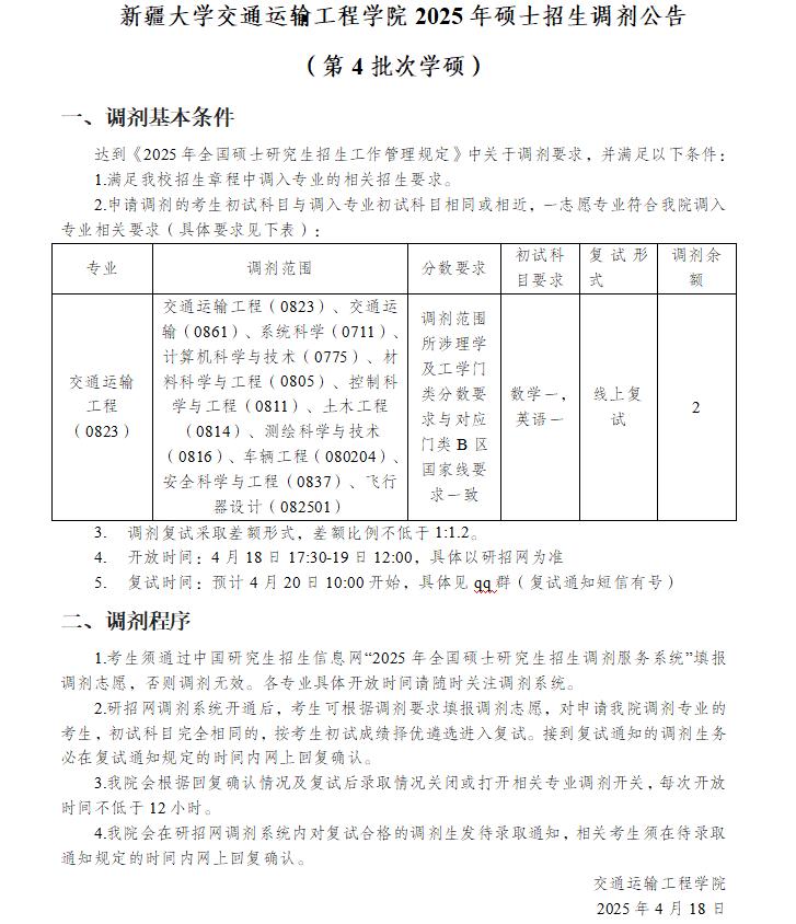 bwin中国官网2025年硕士招生调剂公告(第4批次学硕)