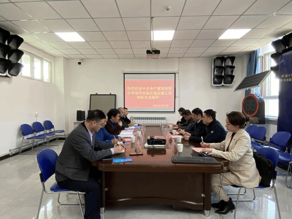 为深入贯彻落实大学党委关于高校毕业生就业工作的决策部署,拓宽企业参与途径,深化“引企入教”改革,吸引优势企业与学校共建共享生产性实训基地,精准了解企业所需,切实提升学生就业能力,3月27日下午,交通运输工程学院与中交资产管理有限公司进行了校企交流座谈。交通运输工程学院副院长冉武平等6名教师,与中交资产管理有限公司新疆总部党委书记、总经理涂光胜,中交资产管理有限公司党委组织部副部长、人力资源部副总经理郭兴,中交资产管理有限公司新疆总部办公室副主任杨帆,中交资产管理有限公司党委组织部(人力资源部)一级主管朱登凯,中交资产管理有限公司新疆区域管理总部人力资源部主管李孟参加了座谈。