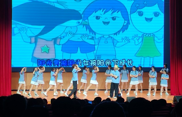晚会第二篇章“筑梦青春・声逢其时”,聚焦学生时代珍贵记忆。弹唱、音乐剧等节目依次上演,同学们以真挚情感、灵动演绎,重现校园生活温馨点滴,尽展青春蓬勃朝气,引发全场热烈掌声。演出至酣,毕业班班主任们款步登台,言语间满是对学生的不舍、骄傲与深情祝福,那谆谆教诲与深情厚意交织,成为晚会温情主旋律,令在场师生泪光闪烁,情动于衷。
