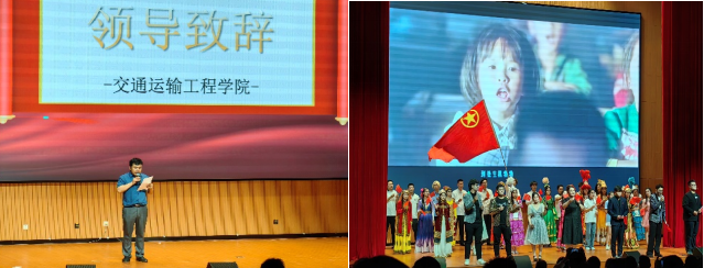晚会紧扣两院的专业特色与发展宏图,“淬火成材”寓意材料学子如钢铁般在磨砺中铸就卓越品质与非凡能力;“交子之道”象征交通学子未来于广阔天地求索奋进,彰显专业情怀。整场活动匠心独运,分为“丝路长歌・阳关寄情”“筑梦青春・声逢其时”“星辰与诗”三个篇章,环环相扣,徐徐铺展青春画卷。