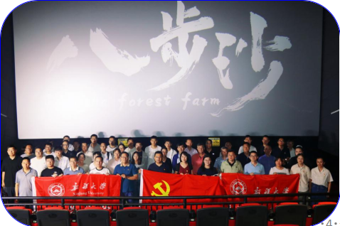 为回顾党的光辉历程,传承红色基因,激励全体党员不忘初心、牢记使命,加强党组织之间交流合作,以党建提升党员队伍凝聚力与战斗力。6月25日,学院联合化学学院在天山万科广场组织开展主题党日活动,共同观看主题教育影片《八步沙》。全体党员沉浸式学习了甘肃省古浪县三代共产党员的治沙史诗。影片真实再现了上世纪80年代“六老汉”以生命立誓、对抗风沙的壮举,面对家园被腾格里沙漠吞噬的危机,郭朝明等六位党员按下红手印,签下治沙承包书。镜头中,他们用麦草扎成网格固沙,在沙窝里啃干粮、睡地窖,甚至用碗扣住树苗抵御风蚀,38年累计治沙造林25万亩。当镜头掠过昔日的荒漠蜕变成葱茏绿洲,第二代治沙人郭万刚含泪说出“沙进人退的时代过去了”,现场党员无不动容。